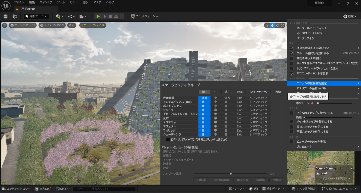 ↓↓UE5 の Archvis (建築ビジュアライゼーション) テンプレート「Hillside」見てみた。